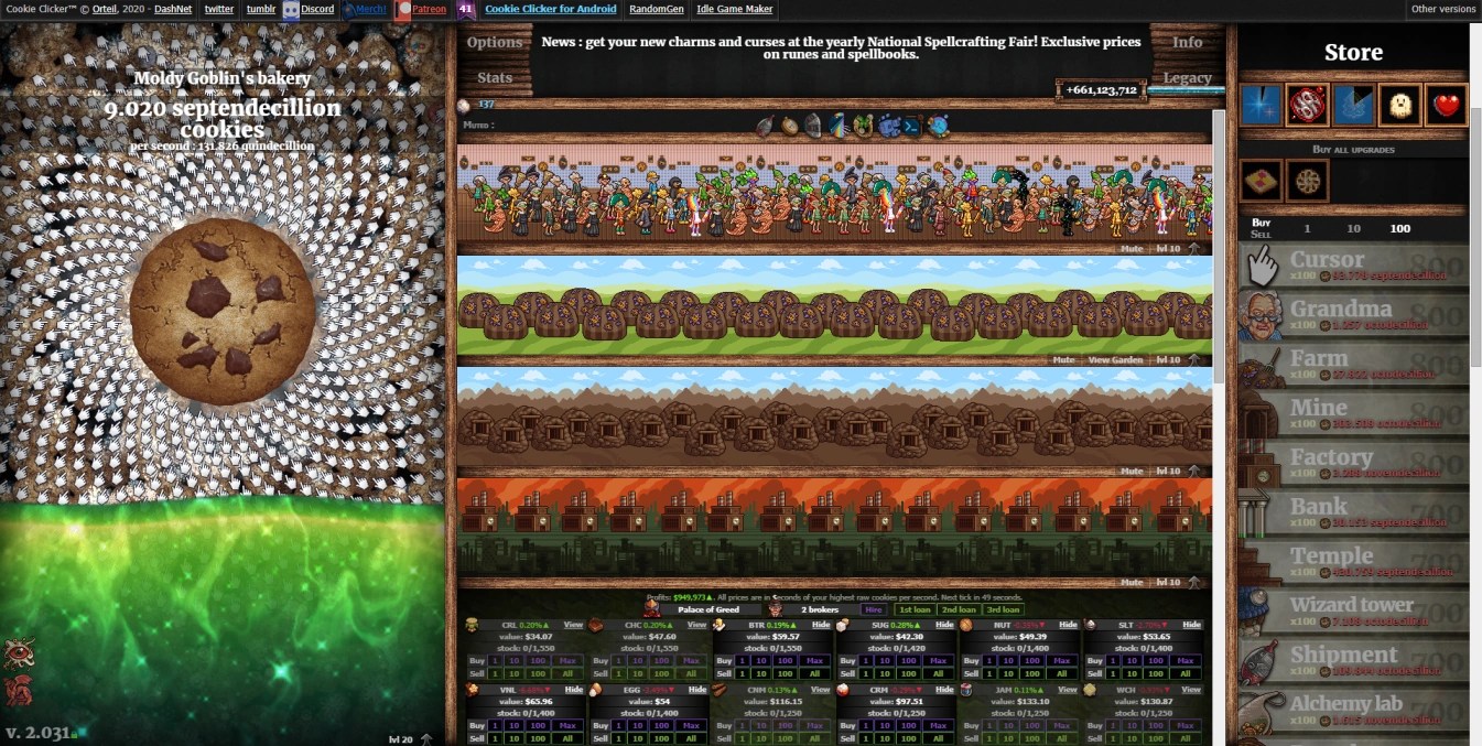 Cookie Clicker tiene cuatro minijuegos. Cada uno puede presumir de mecánicas y características únicas, lo que hace que cada minijuego se sienta como un videojuego diferente. Jardín en Cookie Clicker es uno de los más emocionantes: se trata de cultivar diferentes plantas y hongos y obtener nuevas especies.